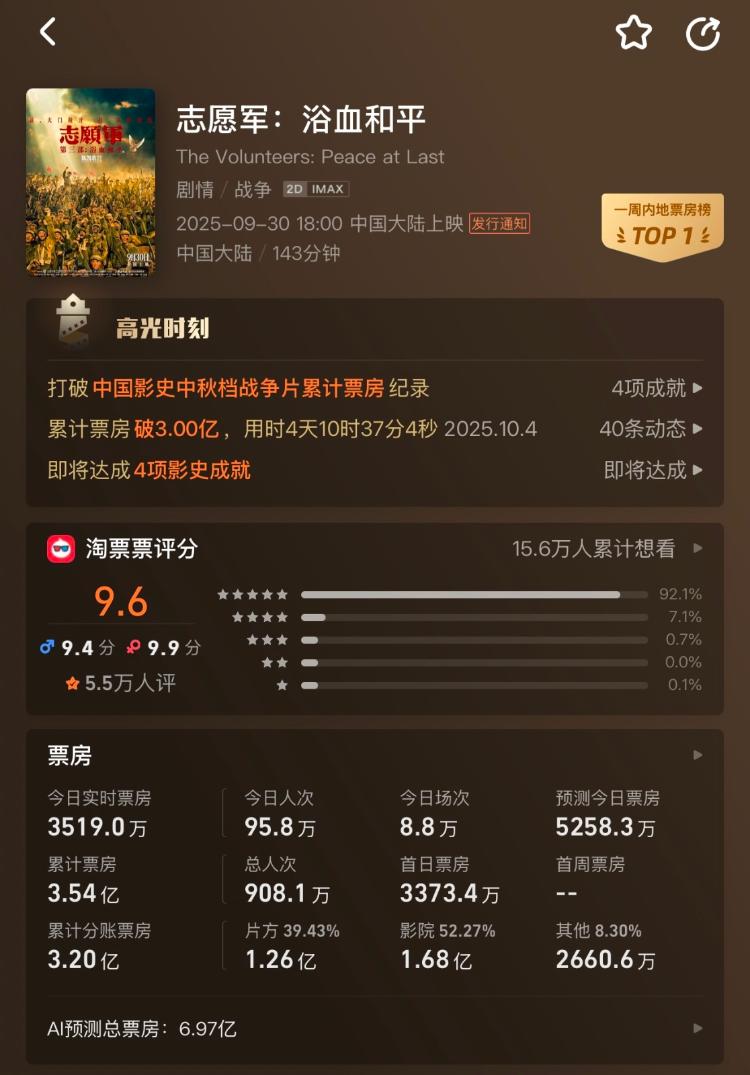 海报新闻记者秦文报告说,截至10月5日5:16,灯塔的专业版数据显示,2025年全国假期的票房收入(预售)超过了13亿元。 “志愿军:拉巴斯血腥”,“ 731”,“小说家2”,“道路生活”和“肮脏”的谋杀案暂时分类为五个主要票房收入,票房收入超过了电影的每个时期。 “志愿军:拉巴兹血腥”继续领导国庆日稳定假期的基本受众的票房收入,其良好的市场表现也为票房的一般稳定性提供了重要的支持。 “ 10月5日,灯塔专业版的数据分析师Chiang Jin在报道说观众肖像正在被提升后在海报采访中显示。看电影《 731》,9月18日上映,在9月18日上映,特别是在这部电影的票房收入中,特别是在《票房》的收入中,特别是在《票房》上脱颖而出。NZE市场在今年的全国假期的前四天,四台城市达到23.9%,新筛选的“ Ears Deaf”于10月4日发布时,是票房的收入,获得了10.7%的编程参与。城市的城市和城市公众更喜欢“ 731”,而1级和2的城市则更喜欢“小说家的第一颗小说家”,尤其是在发现现场发现现场的高度价格的现场,请参阅这一年度前四天的巡回赛的平均四天的平均票价是37.4 Yuan Yuan yuan yuan Yuan Yuan Yuan Yuan Yuan Yuan Yuan的平均四天。和“ Bi phengming认证”可以在假期晚些时候到达总票房。