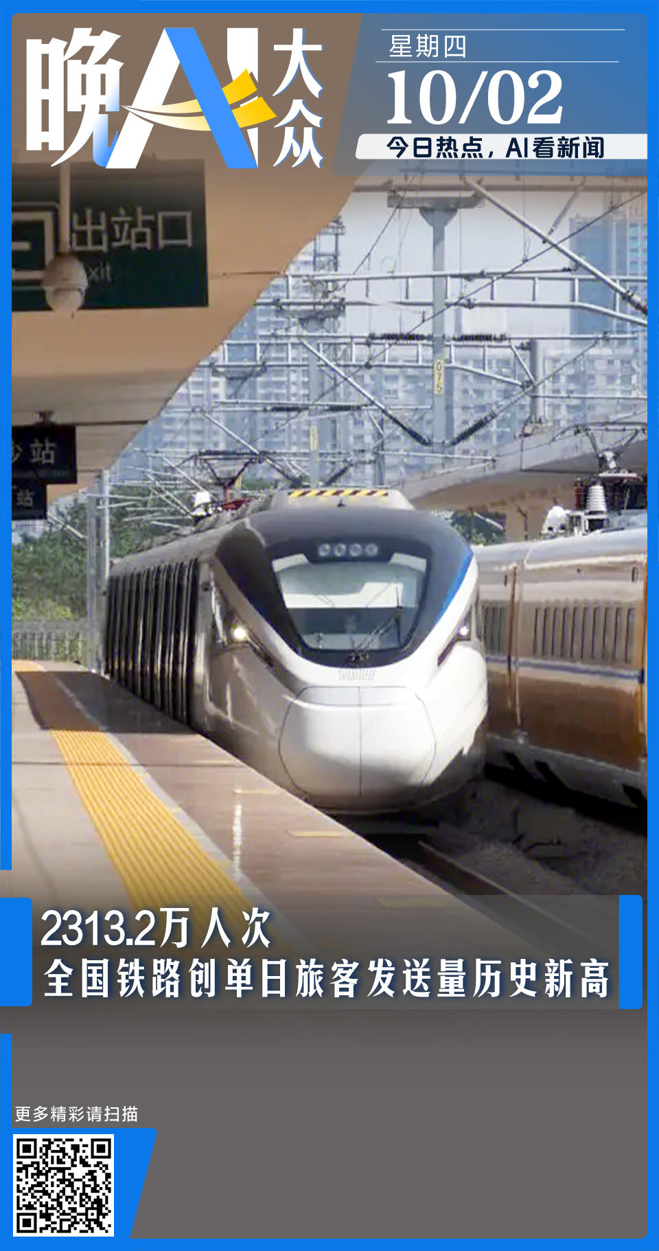 高速导轨超负荷将暂时停止。在“双重节日”节日期间,铁路部门不应“短期购买”。一些高速火车有超载警告和临时停车场,例如在一些“短而长”“”“”“最长”和“最长”铁路中的乘客。铁路部门建议,乘客根据票务中标记的数字,日期,范围和座位号码来解决订购的公共汽车,并共同维持一个良好的旅行环境。全国卫生委员会的详细信息:全国各地介绍了288.814亿儿童护理补贴。今天,记者了解到,全国卫生委员会在10月2日在全国范围内颁发了2.8814亿次托儿所补贴,其中1,55300万人确认。详细信息:28金,3银,2铜!自制团队中国人在第11届亚洲游泳锦标赛中获得了最佳球队奖。第11个亚洲游泳冠军船已经在印度结束。中国游泳队总共赢得了28枚金牌,三个白银和两只青铜,在奖牌列表中排名第一。中国球队在比赛中获得了最佳球队奖,秦海和冈Zhenqi分别被评为男女最佳运动员。详细信息:欢迎香港的行动开始,但是在去年假期之后,市场会重复吗?今天(10月2日)是国庆日的第二天,香港的行动将向您展示10月的谈判第一天。在早期贸易中,Hang Seng Index和Hang Seng Technology开放了最大最大值和最大关闭,不仅在今年达到了新的最高最高点,而且在四年多的时间内达到了新的最高最高点。在中午关闭时,Hang Sen Indexg增加了1.45%,至27,245.68点。 Hang Seng Technology指数增加了2.66%,增加了6,637.65点。关于国庆节第一次旅行的更多报告是在线,Taishan获胜!清晨10月1日,来自全国各地的121,000名游客和公民在天安门广场举行了宣传国旗的仪式。国庆假期和Aitom节已正式到来。一些仍然被困在途中,而另一些则到达风景如画的地方。第一天,有许多全景,上面写着“人们追逐人群”。 Meituan的旅行数据显示了在国庆节第一天疲惫不堪的许多地方的许多风景秀丽的地方门票。在十大最佳景色中,太极山在许多主题公园中脱颖而出,并赢得了第一个地点。此外,还有三个历史和文化风景景点,即西安·沃尔特·沃尔·宾林(Xi’an Walt Wall Binlin)的历史和文化风景景观,老挝山的风景秀丽的地方以及Nushou Mountain的文化旅游也位于10个最佳状态。第三天早晨。在Chandon东南部的沿海水域,沿海水域长2-3.4米的海浪的波浪警告水平江苏以北,是蓝色的。国家海洋预测站继续发出蓝色海浪的警报。详细信息(公共列表包括流行的型号,结合了由人工智能生成的网络中的热门搜索,通信指数等等)2025年票房的总票房超过4250.2亿,去年超过了。自今年年初以来,中国电影在票房上一直很受欢迎。根据在线平台的数据显示,截至10月2日,这部电影的票房总收入超过了2024年票房的总收入。详细信息:231.32亿!国家铁路公司于10月1日对旅客每日交通进行了新的历史注册,国家铁路派出了23.132亿乘客,在每日旅客运输中获得了最高量,并且运输是安全,稳定且有序的。 10月2日,国家铁路中的乘客流量继续升高,估计为1,930万客运S发送和1,409列客车将添加。更多细节,成千上万的游客会见政府自助餐厅!自今年春天以来,“中午550公斤蒸的米饭”,长木德·奇恩(Chan de Chongching)和长木鹅(Long Chan Geese)区变得流行,这使长陈(Long Chan)成为受欢迎的旅游胜地。 10月1日,Rongchang的相关部门工作人员告诉记者,当天中午,有2700人吃晚餐,并在自助餐厅的米饭中蒸了86片大米。提前250公斤的鹅犬提前售罄,当天中午送出了15个生日蛋糕。仅在10月1日,餐厅才准备了650公斤长的猪肉和2,000公斤蔬菜,以保证为游客提供软食物。详细说明了Huaxia基金改变了教练。 Zou Yingguang被任命为总统,Li Yimei被任命为副总统。重要的基金公司Huaxia Fund指挥了主要的人力资源设置。 10月1日,Huaxia Fund ManagemEnt Co.,Ltd。(以下名称为“ Huaxia Fund”)宣布宣布该公司的前总裁张Yujun已被任命为劳动需求,Zou yingguang将担任总裁,Li Yimei将成为副总统。该约会于2025年9月30日正式颁布。详细信息2026 AFC U23亚洲杯小组:中国与泰国,澳大利亚和伊拉克群体位于同一群体中,北京时代为2026年,AFC U23亚洲杯彩票的结果宣布,中国宣布,而中国与Tilandandandandandandandandandandandandand,Elaika和Elaika相同。亚洲杯2026 U23将于明年1月7日至25日在沙特阿拉伯举行。共有16支球队竞争,分为四组。每个小组的前两个将晋级四分之一决赛。详细信息:钻石血案比熊猫的血液怪异了100倍。记者得知,佛山市蒙德地区的中央血液办公室是实验室的实验室E血管最近检查了JK(A-B-)的病例,这是一种罕见的“钻石血液”,比“熊猫血”怪异的100倍。详细信息Lu Guanong拒绝加入香港的防暴警察:这不是国家利益。香港政府想要的反中国和香港骚乱卢·圭奇(Luo Guancong)最近试图进入新加坡。在我的家乡度过了14个小时后,据报道,它被固定为飞往美国旧金山。新加坡内政部于29年对当地媒体Lianhe Zaobao做出了回应,并指出Luo Gunkong的入境并不符合新加坡的国家利益。详细信息:“消灭民族角色”! Lee Jaemin批评了反中国集会。韩国总统李·敏(Lee Jae-Min)在10月2日表示,韩国韩国的“ kyo-il-bo”和韩国媒体的其他报道称,针对韩国某些国家和韩国人民的仇恨言论是不公正的。它检测AILS是美国政府“停止”的第一天:成千上万的员工被停职,游客被“关闭”。美国参议院驳回了临时支出法案,美国联邦政府进入了第一个临时支出法案。在政府的“关闭”之后,大约有75万联邦雇员被迫在付款后获得许可证,许多公共服务被暂停。国家公园和航空系统都受到影响